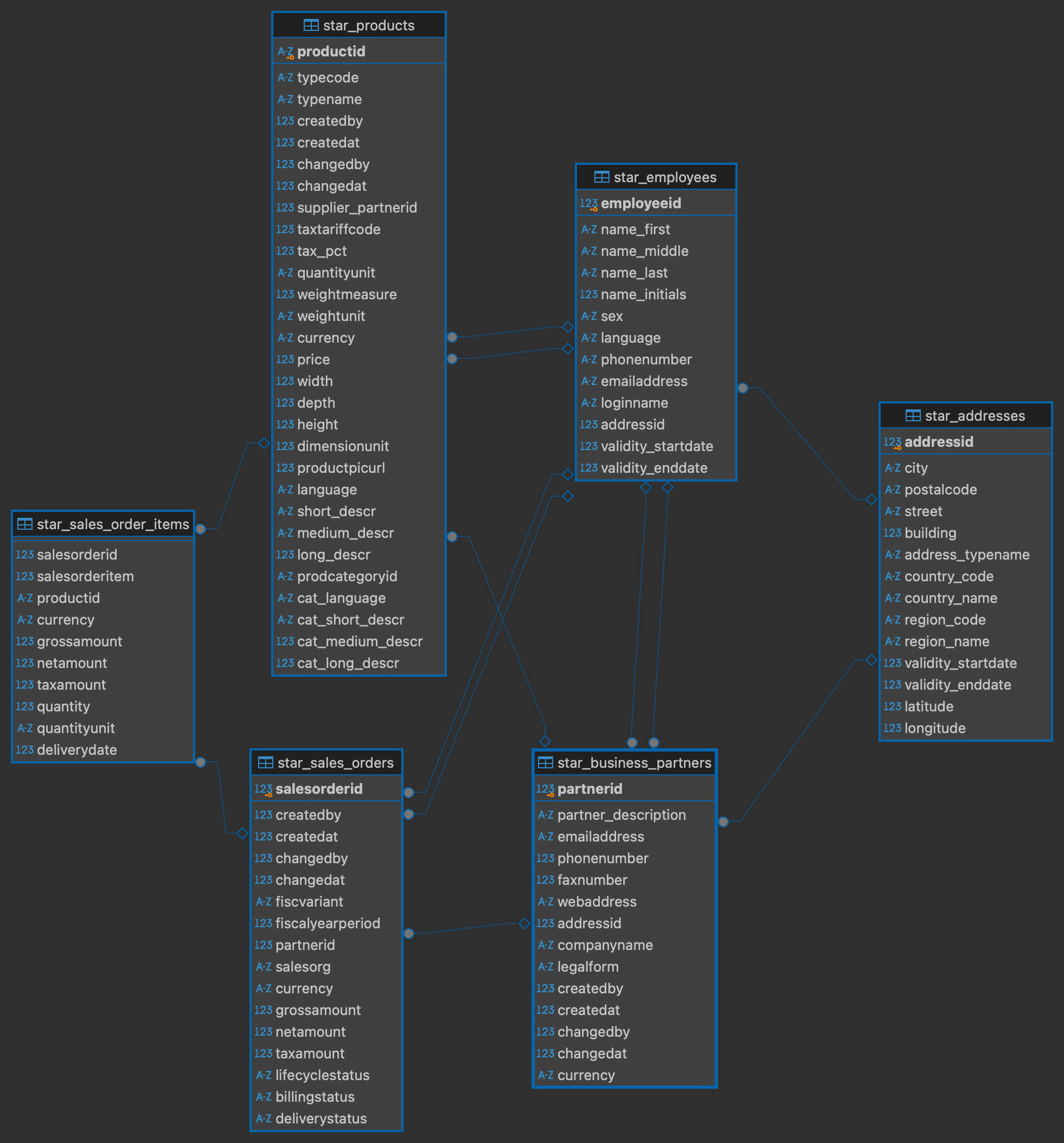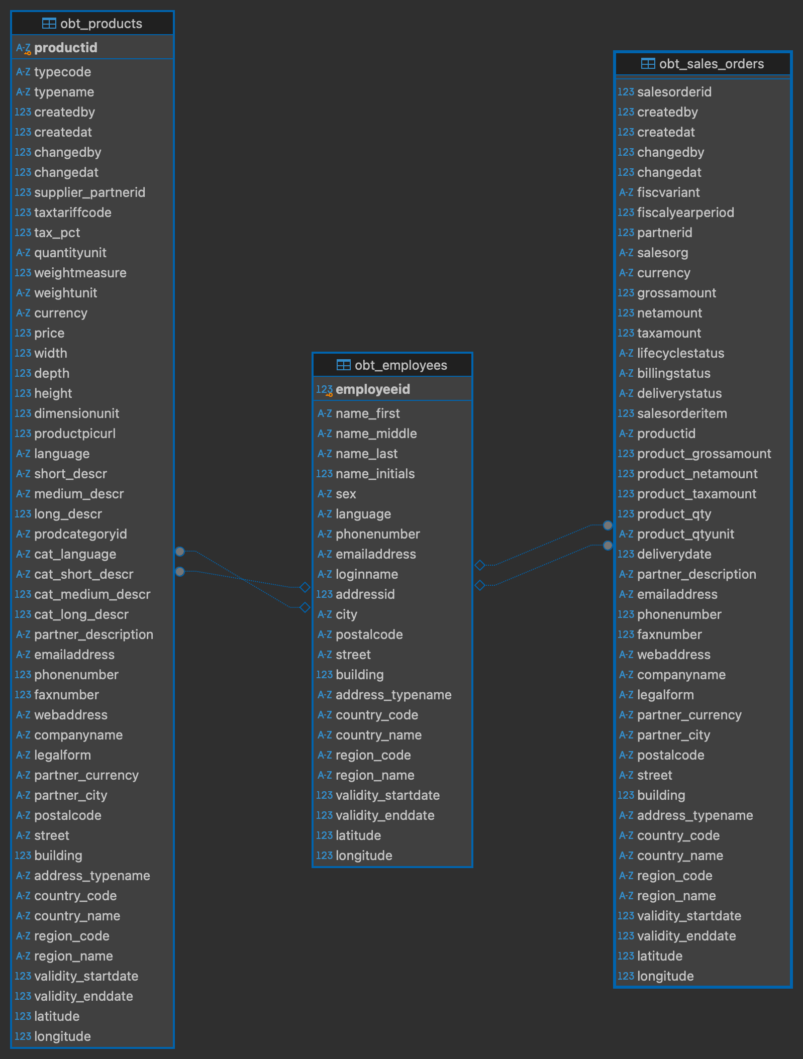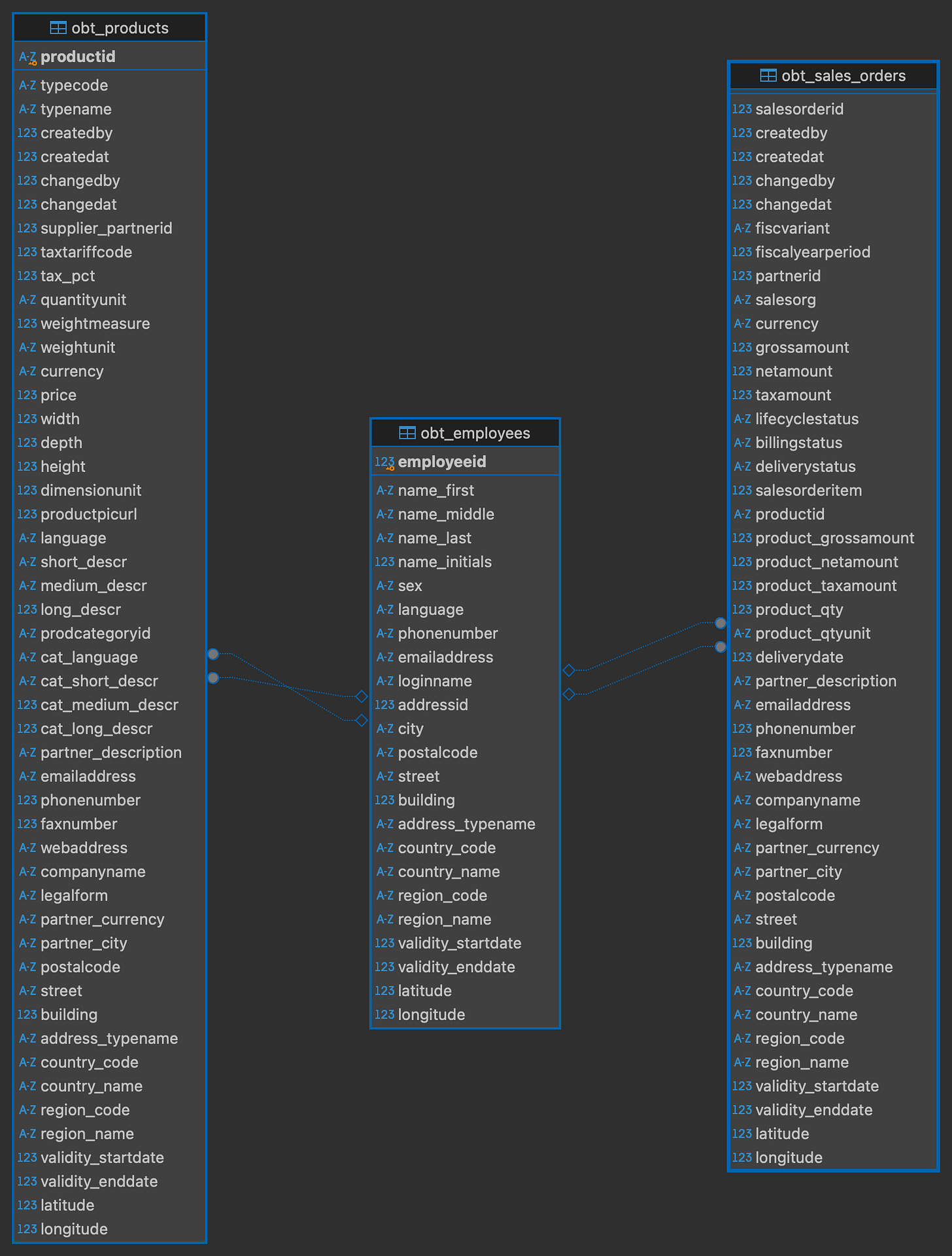 on p.supplier_partnerid = b.partneridAfter that we will also denormalize the sales_orders table and the employees table which will leave us with this schema :